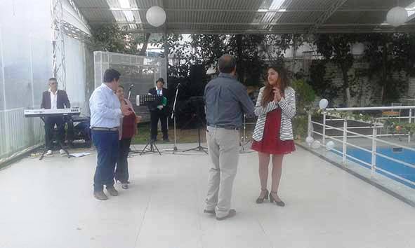 El maestro de ceremonias inició la fiesta haciendo conocer al público asistente que se celebraba los cumpleaños de los esposos Flor de María (22 de Nov.) y Juan Enrique (13 de Nov.) a quienes invitó a pasar al estrado, entregándole el micrófono a la Sra. Flor de María, quien dio el saludo de bienvenida, manifestó su alegría por la presencia de todos los asistentes y agradeció a Dios por darle un hogar feliz, a su turno Juan Enrique también manifestó su contento por la presencia de sus familiares y amigos y parafraseó al orador de turno La felicidad se consigue cuando uno es feliz.