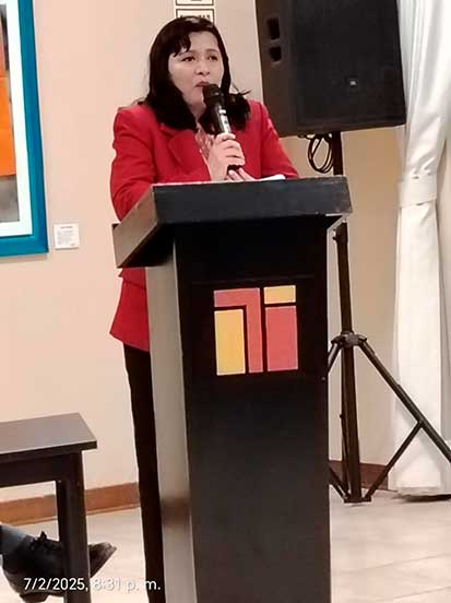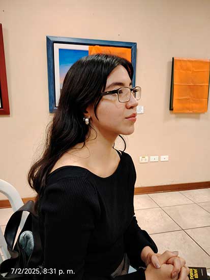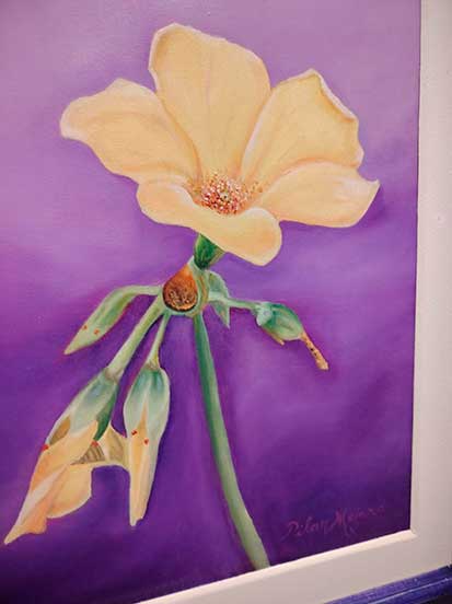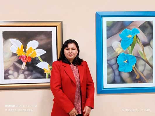 Cuando tocó el turno de presentar la Muestra, el artista plástico y docente de la ESBA “Mario Urteaga”, Daniel Cotrina Rowe, precisó que la expositora, a pesar del poco tiempo que tiene recorriendo el estudio y cultivo de la pintura y escultura, como alumna de esa Escuela, ya está demostrando gran potencial. Parte notoria en la muestra constituye un par de falsos vitrales con motivo de colibríes y en cuanto a las obras al óleo son mayormente flores silvestres de nuestro entorno.