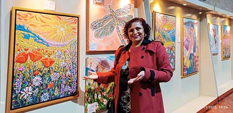 EDITH, UNA SENSIBLE ARTISTA PLÁSTICA Consuelo Lezcano Ruiz La noche del 14 de noviembre se desarrolló la ceremonia de apertura de la XIV muestra visual de obras artísticas titulada “RETORNO – LOS BENDITOS PINTORES”, teniendo como protagonistas a cinco abogados: Luis Ángel Guevara, Edith Cabanillas, Nilton Rojas y Pilar Mejara. Entre ellos, hemos tenido ocasión de entrevistar a Edith Cabanillas Palomino, una de las más entusiastas exponentes del arte pictórico con obras elaboradas en óleo y relieves, utilizando diversos efectos de color novedosos, como el dorado.
