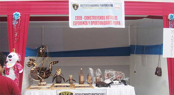 Del 05 al 07 de noviembre se está llevando a cabo la IV Feria Regional Artesanal en la Plazuela Amalia Puga de Losada de la ciudad de Cajamarca con la participación de los Centros Penitenciarios de Cajamarca, Chiclayo, Jaén, Piura, Sullana, Trujillo Mujeres y Trujillo Varones, ofertando en exposición y venta de artículos de artesanía construidos por los internos de los Centro Penitenciarios participantes.