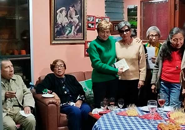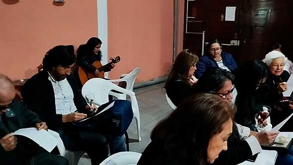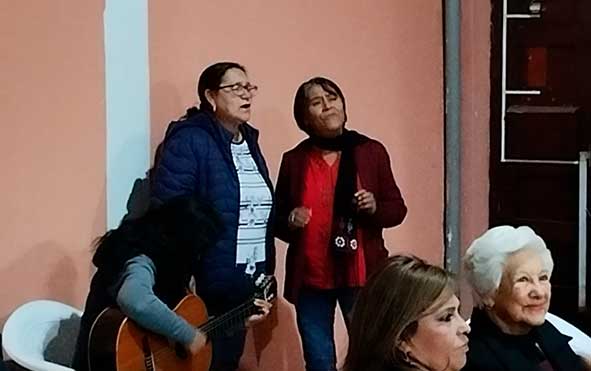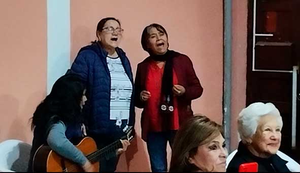Entrega de la letra de canción El Amigo. Por la Lic. Consuelo Lezcano Ruiz, coreada por los asistentes.
