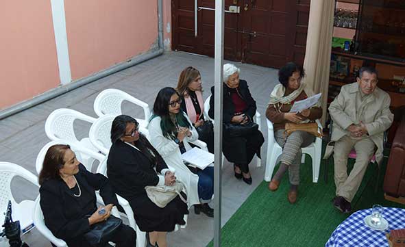 TERTULIA LITERARIA CONMEMORANDO EL 32° ANIVERSARIO DE LA AGRUPACIÓN DE ESCRITORAS NORTEÑAS. NÚCLEO CAJAMARCA Y LA VISITA DE LAS ESCRITORAS MANUELA SERRANO RUIZ, ESPAÑA, Y CARMEN LEZCANO ARANDA, LAMBAYEQUE, PERÚ. Juan C. Paredes Azañero Se llevó a cabo el día lunes 12 de agosto desde las 5 de la tarde en su casa de la Lic. Consuelo Lezcano Ruiz, Presidenta de la Agrupación de Escritoras Norteñas. Núcleo Cajamarca, fue una tertulia muy agradable, acogedora y llena de poemas, narraciones, biografías y canciones que alegraron el alma. El saludo de bienvenida estuvo a cargo de la Lic. Consuelo Lezcano Ruiz, Presidenta de ADEN y anfitriona del evento.