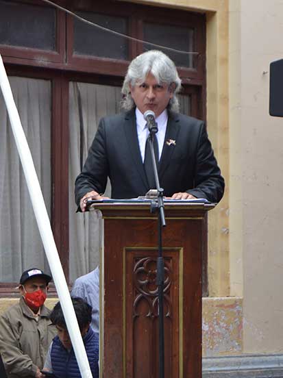 Apertura de la VII FELICAJ “Volvemos para leer” a cargo del burgomaestre Juan Portal Pizarro, Alcalde de la provincia de Cajamarca