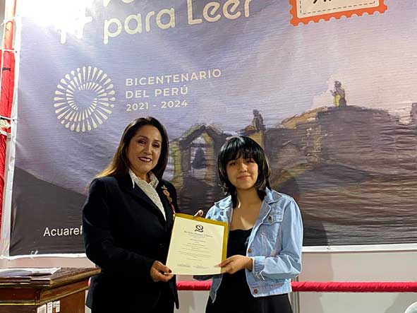 De igual manera el señor Manuel Rodríguez, subgerente de Cultura de la Municipalidad Provincial de Cajamarca, hizo entrega de un presente a la joven escritora, deseándole éxitos en su promisoria carrera literaria.