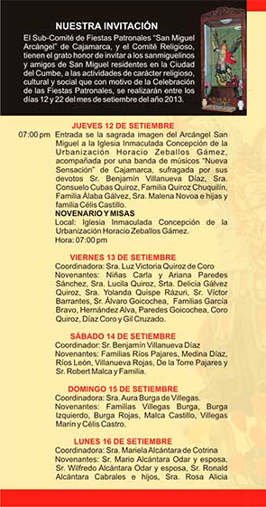 PROGRAMA DEL NOVENARIO DEL ARCÁNGEL SAN MIGUEL 2013.
