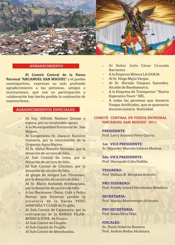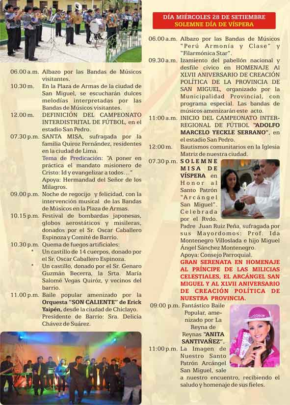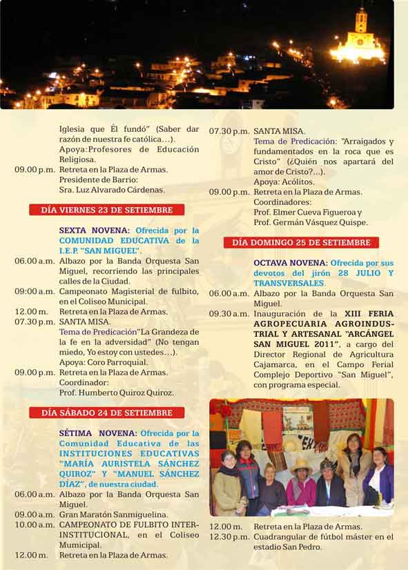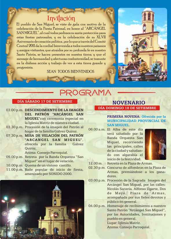 Programa General de las festivas en honor al Arcángel San Miguel - 2011